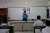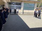 日南消防署の方は、避難の様子を観察されて、避難にかかった時間やポイント(①できるだけ早く②スムーズに避難)、災害の対応の例をわかりやすくご説明くださいました。さらに避難を終えた生徒の質問に誠実にお答えくださいました。ご多忙な中ありがとうございました。生徒が考える貴重な時間になりました。
