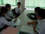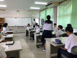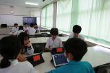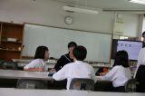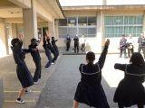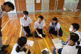 「生徒が答えを創り出す」避難訓練。理科室で火災発生。足を怪我した友達、保健室で休んでいる友達、パニックになっている友達。誰が職員室に伝える?放送が流れるのを待つ?いろいろな問題を与えられた生徒の皆さん。火事の情報を受け取ってから、自分たちで考え、協力して運動場に避難しました。先生方は黙って見守ります。