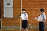 1年代表の藤井さん、3年代表の加藤さん、生徒会代表の原井さんが、それぞれ1学期の反省と今後の決意を発表しました。原稿を暗記して、堂々と発表する姿は、迫力さえ感じました。
