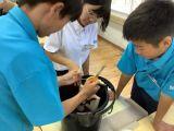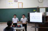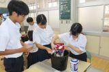今年も、細田プロジェクトの全面バックアップを受け、1年生が「えひめAI-2」を作成しました。これは、砂糖やヨーグルト、納豆や酵母菌など、身近な食べ物や生物を混ぜ合わせてできる環境浄化や水質改善が期待できる液体です。後日できあがったえひめAI-2は、1年生がペットボトルに入れて家に持って帰りました。各家庭で効果を確かめてみてください。さらに、この液体の活用方法を考えていきましょう。細田プロジェクトの前田さん、若松さん、谷口さん、ありがとうございました。