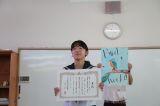 南那珂地区愛鳥週間ポスター 銅賞 3年生竹本さんの表彰式。(*^o^*)世界に一つの作品!
