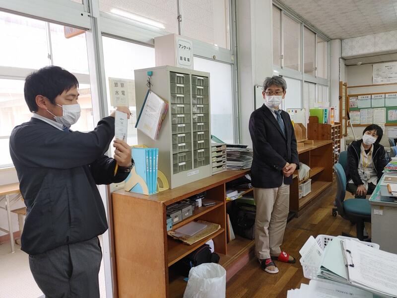 いつもと違う校長室の雰囲気。残念ながら受賞者のうち1名は欠席でしたが、身近な経験や租税教室での学びをもとにした作文の内容について、温かいお褒めの言葉をいただきました。ありがとうございました。