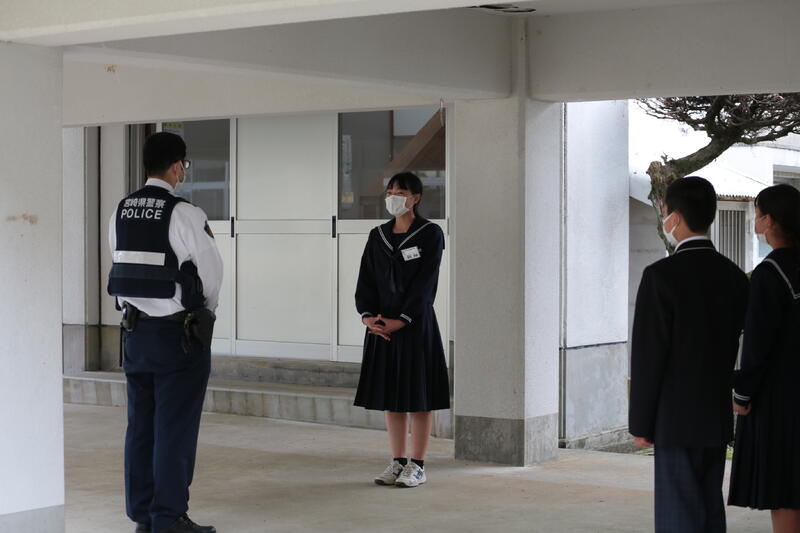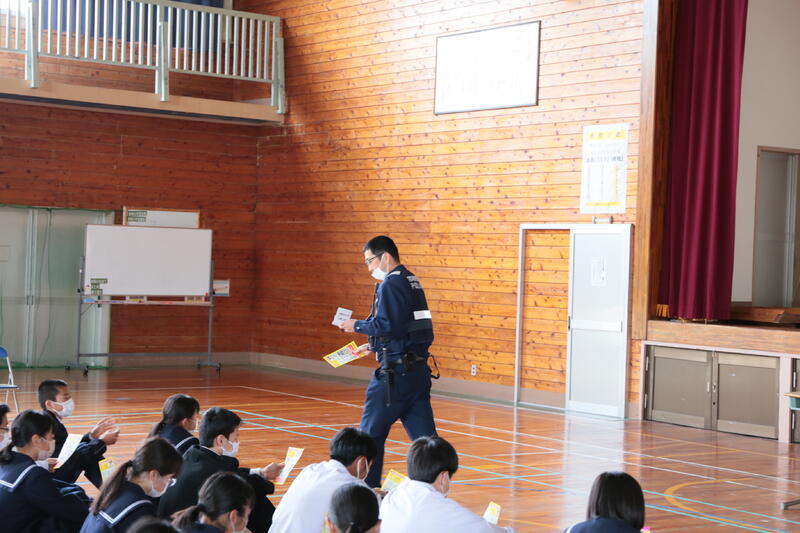 4月12日(水)に、大堂津駐在所の廣島巡査長と細田駐在所の宇宿巡査長をお迎えして交通安全教室を行いました。