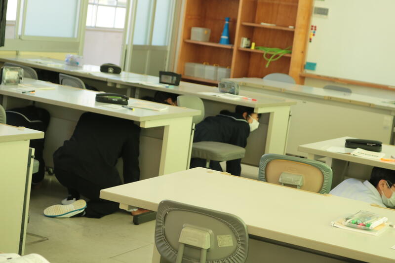 3日間の朝自習の時間に、災害や不審者に対する緊急対応について、全校生徒と先生たちで確認をしました。