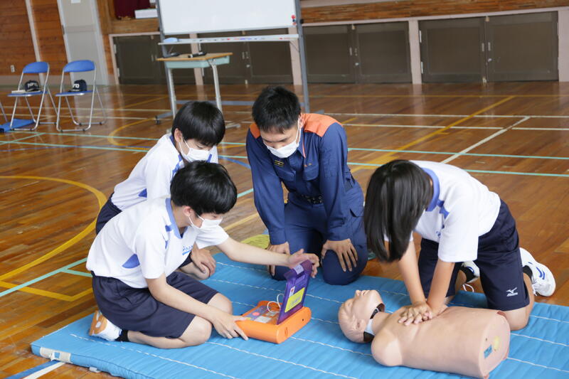 午後は日南市消防署から講師を迎え、救急蘇生法講習会を実施しました。