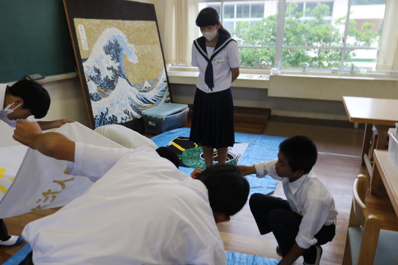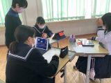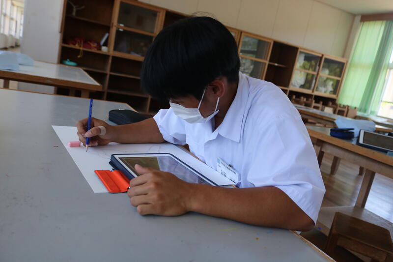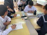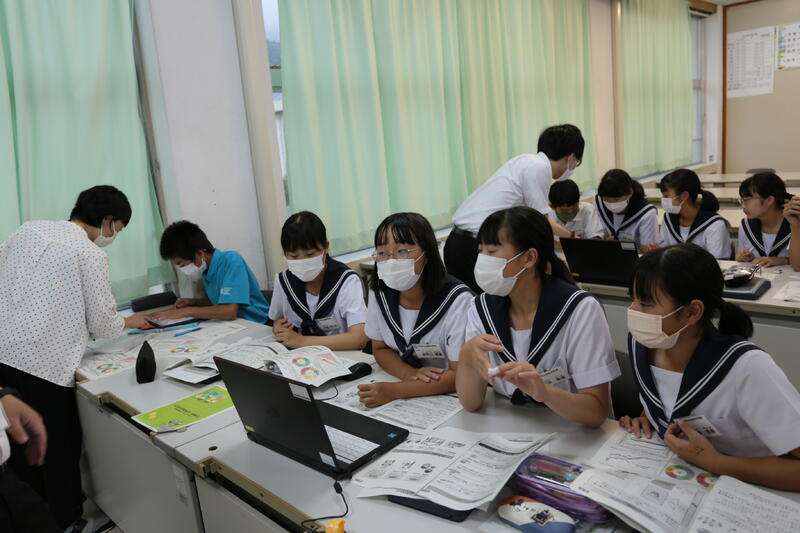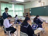3年生は、ことわざや四字熟語等の知識を使って、おみくじの文章を考えるアウトプットに挑戦。タブレットには、自分の知識を相手に伝わるよう変換した文章が入力されていました。先生も生徒もタブレットの活用に慣れています。これまでの実践の積み重ねですね。