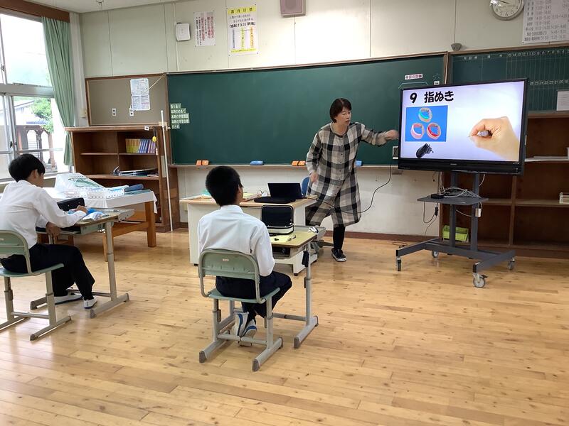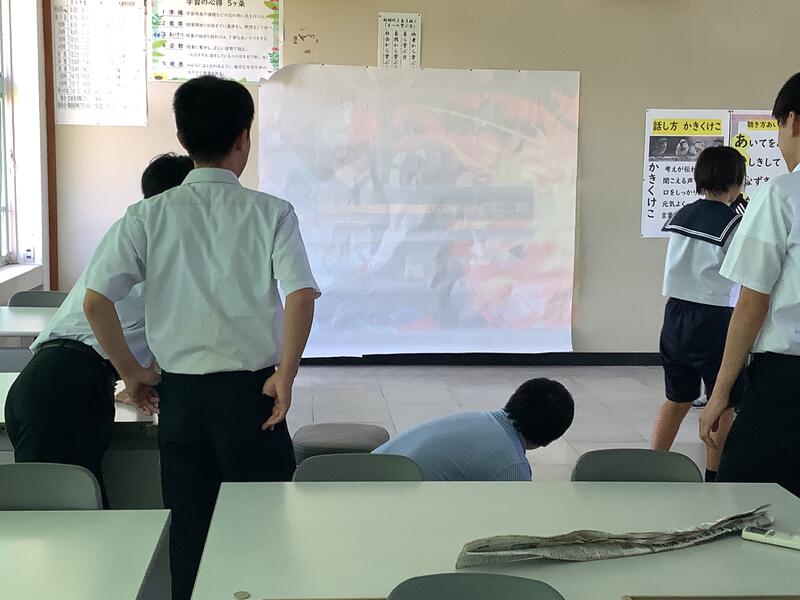 2年生は、金属板でできた宮崎県の面積の求め方の話合い。途中で、解決に必要な知識に気付き、納得を積み重ねて理解を深め、解決することができました。学級は課題を解決する集団です。とてもよい雰囲気の中での話合いでした。