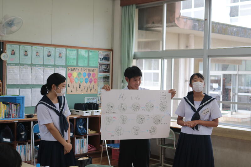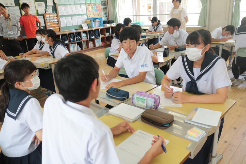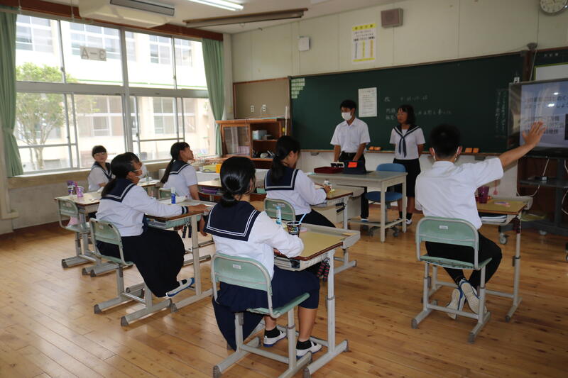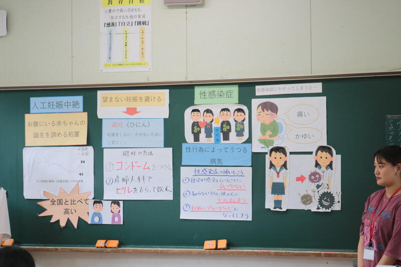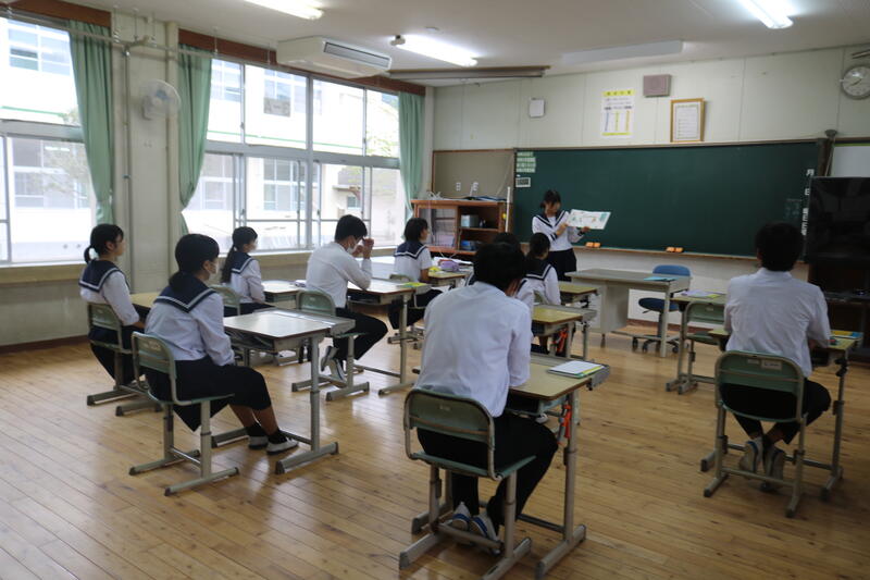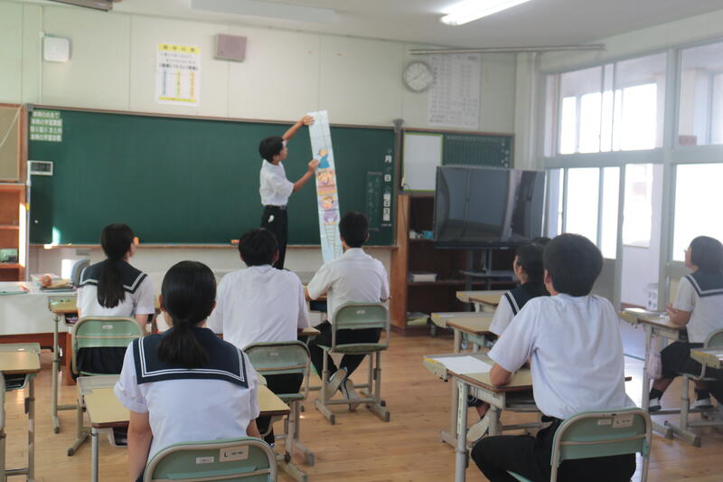 全校一斉「いのちの教育」の授業を行いました。これまで、日南市レインボープランと学年の実態に基づき、学級担任と保健室の先生が連携し、指導内容や教材教具を協議して準備をしてきました。生徒の数よりも参観者が多い状況(*^o^*)でしたが、どの学年も熱心に楽しそうに意見交換をしながら授業が進んでいきました。