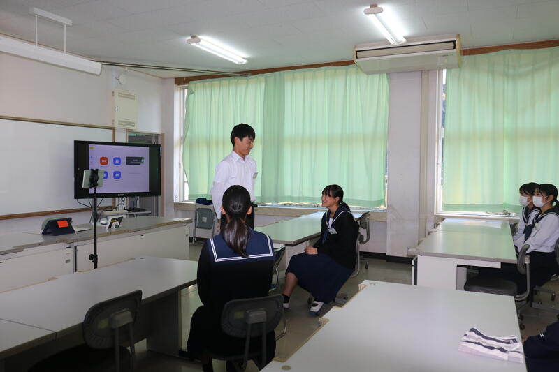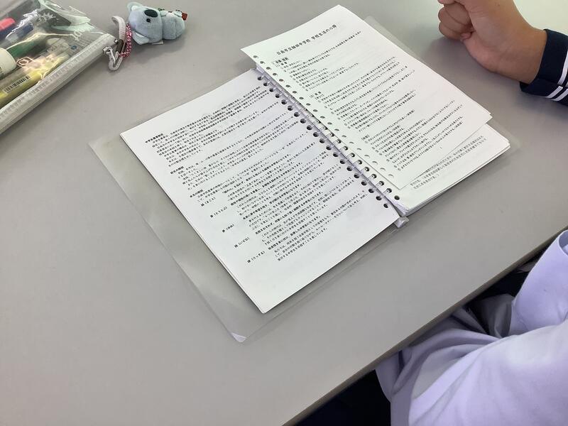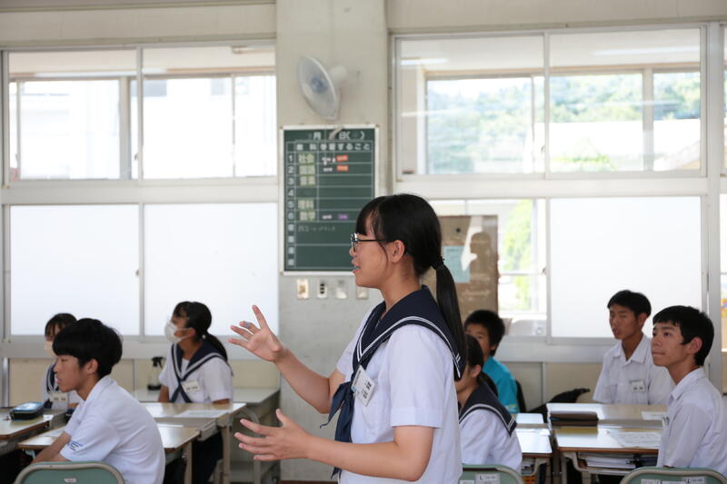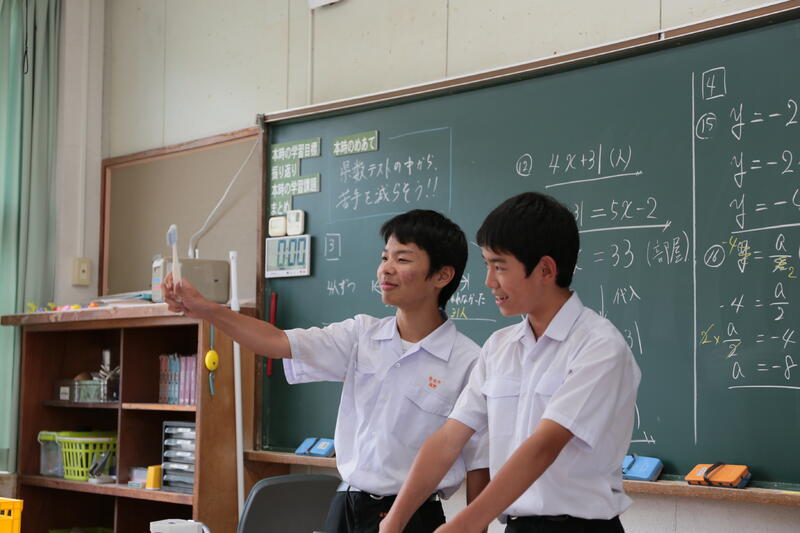 先生たちは、新時代を生き抜くために必要な力を身につけるための授業づくりに挑戦しています。求める授業を簡単に言えば、先生の話を一方的に聞くのではなく、生徒が考えを出し合い、答えを作り出すような授業です。先生全員が、ひなたの学びを意識した授業づくりに挑戦し、お互いの授業を参観して学び合っています。どの授業も生徒が考えたり発表したりする場面が取り入れられています。