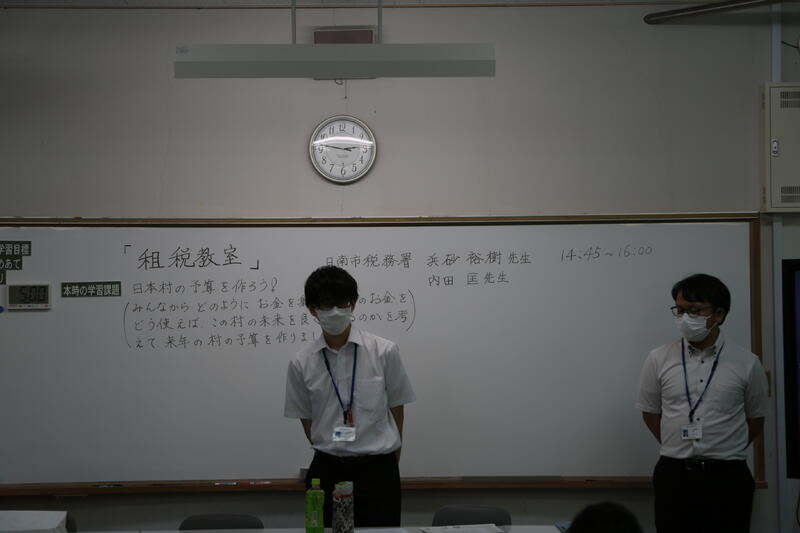 松田先生のこれまでの段取り、外部講師を活用し一緒に答えを作り出す授業の挑戦に感謝です!日南税務署の浜砂さんと加藤さんを講師として迎え、生徒の皆さんが税金について気づき考える学習を進めました。丁寧な授業の準備、笑顔いっぱい、専門的だけれもわかりやすい説明。日南税務署の皆様ありがとうございました。少人数でも、外部の方と触れ合い様々な価値観を学ぶことができる、それが細田中です!