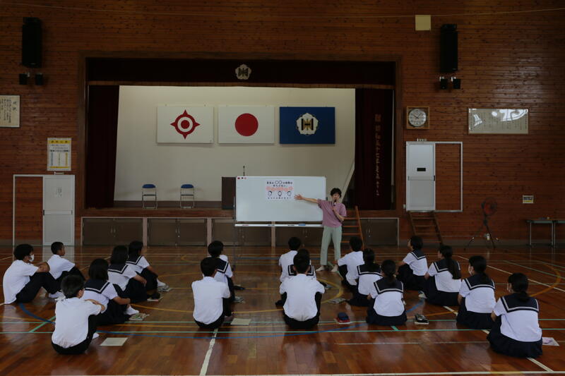 パラアスリートの官野一彦さんをお招きし、講話やワークショップをとおして、パラスポーツや共生社会への理解を深めました。あっという間の90分間。子どもも大人も一緒になって、生き方を考えたり、「答え」を創り出したりする活動に取り組みました。