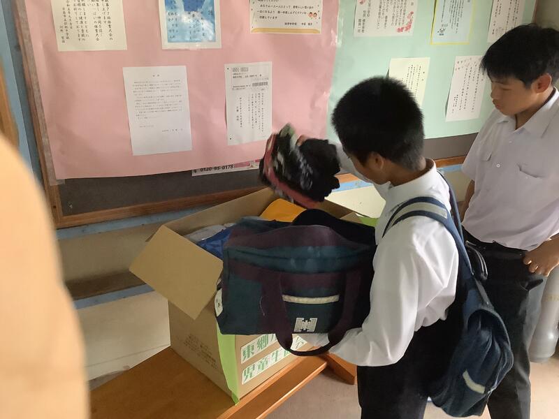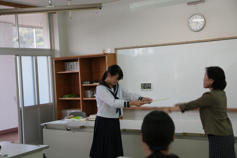 12月19日、細田地区の園田透さんが、来年の干支である辰の置物や全員分のキーホルダーを持ってくてくださいました。手造りのあたたかさ、オリジナルの工夫、学校や生徒たちへの思いを感じます。特に、3年生の吉田さんは、小学校時代の園田さんとの思い出を作文にしたということで、担任の先生が見守る中、個別にプレゼントしてくださいました。地域の方に見守ってもらいながら細田っ子は成長します。