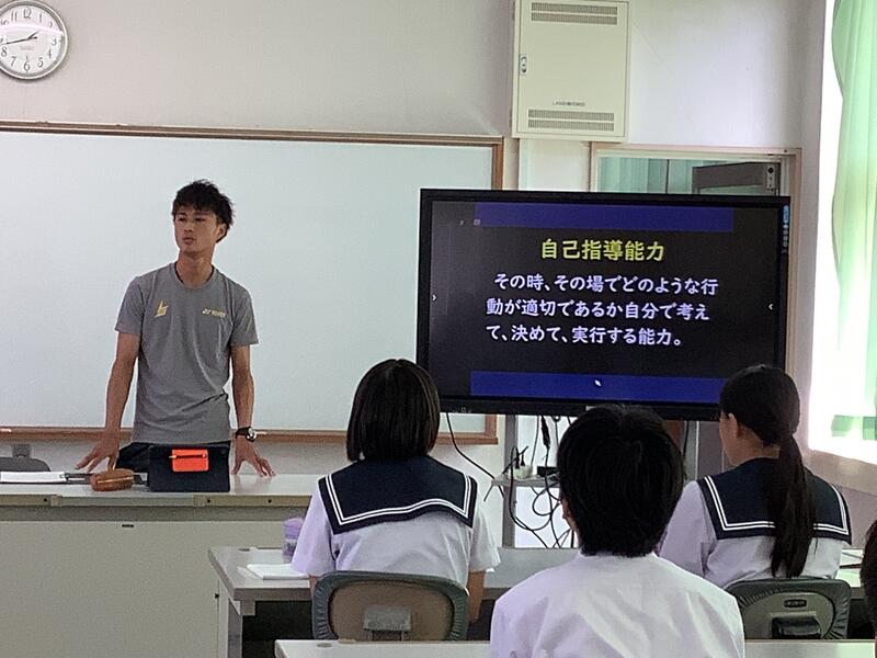 「生徒の感想(一部抜粋):●人生諦めなければなんとかなるという精神がどれだけ大切かを学ぶことができた。●夢に向かう練習は辛いですが、勝ったときの喜びを思いながら練習を『頑張る』を『楽しみ』に変えていきたい。●世界はいろいろな人がいるからそこ、皆が過ごしやすい環境作りが大切だと思った。多目的トイレを優先的に空けておくこと、全ての玄関にスロープをつけるなど。自分一人ではどうしようもないかもしれないけど『どうすればできるか』という考えで、世の中をもっとよりよくしていけたらよいと思った。」