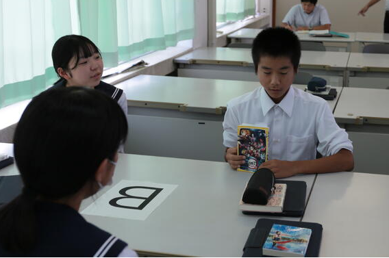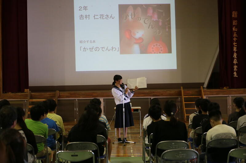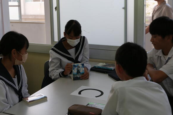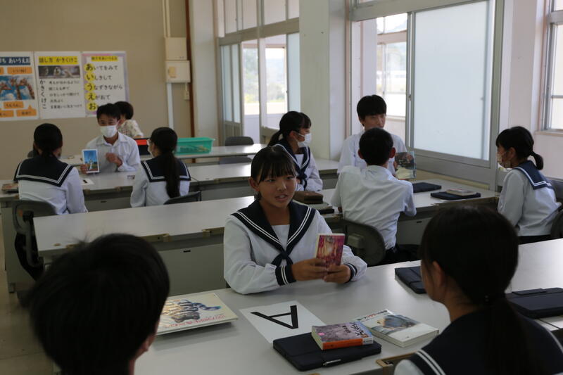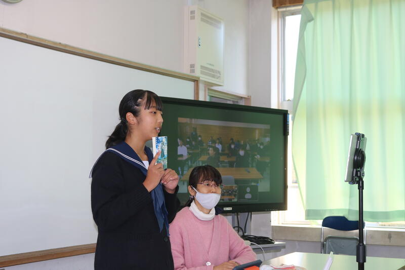 チャンプ本の選出はしなかったのでビブリオ紹介という形でしたが、本校のチャンプ本2冊と榎原中の2冊合計4冊、4名の代表によるお薦め本の紹介がありました。オンラインで画面上の交流でしたが、さすが学校代表、本の紹介が大変上手でした。互いの学校の雰囲気も感じ取ることができました。紹介後の討議や振り返りでいろいろな意見や感想が出されました。学校図書司書の多田先生、ICT支援員の先生、榎原中学校の先生方など、多くの皆様のお支えに感謝します。