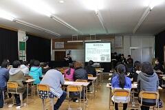 2月13日(火)の午後に新入生説明会を実施しました。その日の午前中は細田地区3校の小学校が細田中に集まって、一緒に学習をする集合学習の日でした。小学校6年生とその保護者を対象に開いた新入生説明会では、生徒会執行部の生徒が、中学校生活をわかりやすく説明してくれました。中学校生活のスタートがスムーズにいくことを願っています。