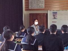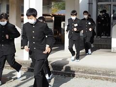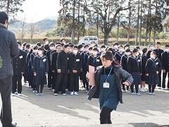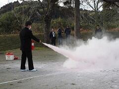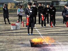 1月16日(火)の6校時に火災を想定した避難訓練を実施しました。理科室から火災が発生したとの想定で、全員が運動場へ避難しました。今回は日南消防署や興南防災の方に来ていただき、講話や消火訓練もあわせて行いました。避難では3年生の1名が逃げ遅れたとの想定で、何も知らされてない3年生の対応を観察しました。これからも様々な場面を想定しながら、万が一の時の対応力を身に付けさせていきたいと考えています。