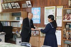 12月19日(火)に日南人権擁護委員協議会 会長 佐藤幸一様をはじめ宮崎地方法務局日南支局や人権擁護委員の方が来校され、本年度の人権作文の表彰式を実施されました。2年生の松﨑百花さんが人権擁護委員協議会奨励賞を、また学校が学校賞を受賞しました。これからも人権教育に力をいれて取り組んでいきたいと改めて思いました。