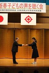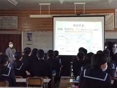 1月25日(木)に南郷ハートフルセンターで日南市「新春子どもの声を聴く会」が実施され、2年生の松岡花風さんが出場しました。松岡さんは中学生の部の最後、10番目に登壇し、「巡る世界に願うのは」のタイトルで弁論しました。惜しくも最優秀賞には選ばれませんでしたが、凜として堂々とした発表でした。