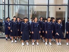 11月8日(水)に南郷ハートフルセンターで第9回日南市音楽大会が開催されました。細田中は午後の部に出場し、「絆」と「ありがとう」の2曲を全校合唱しました。会場内の写真撮影はできませんでしたので、出場前の練習の様子の画像を載せました。