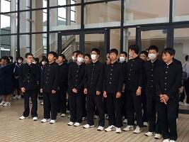 11月8日(水)に南郷ハートフルセンターで第9回日南市音楽大会が開催されました。細田中は午後の部に出場し、「絆」と「ありがとう」の2曲を全校合唱しました。会場内の写真撮影はできませんでしたので、出場前の練習の様子の画像を載せました。