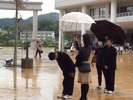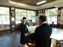11月13日(月)午前に日南・串間地区租税教育推進協議会会長の黒木康英教育長と日南税務署の方が来校され、平成29年度中学生「税についての作文」の受賞者への表彰式が校長室で行われました。受賞したのは推進協議会会長賞金賞の2年松﨑百花さんと同じく推進協議会会長賞銅賞の2年松岡花風さんです。これからも素晴らしい作文を期待しています。
