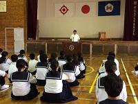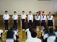 10月6日(金)の放課後に、10日(火)に実施される地区中学校秋季陸上大会と23日(月)に実施される地区中学校総合駅伝競走大会に出場する選手の激励会を行いました。陸上競技の代表と駅伝競技の代表がそれぞれ決意表明をした後に、生徒会の眞那田拓君と藤丸夏央君が激励の言葉を送りました。教頭先生の激励の後に、陸上競技キャプテンの2年生の藤井陸君が元気よく選手宣誓を行いました。それぞれの活躍を期待したいと思います。