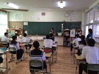 10月11日(水)に細田地区の小学校3校の集合学習が細田中学校で行われました。3年生から6年生までそれぞれの学年で3校合同での授業でした。いつもは少ない人数で授業を受けていますが、この日は少し多めの児童での授業でした。体育や外国語活動、理科、社会など中学校の先生から専門的な授業もありました。昼食後には中学校の保体委員会の生徒が小学生に歯磨き指導を行いました。小中の児童・生徒がふれあう良い機会になりました。