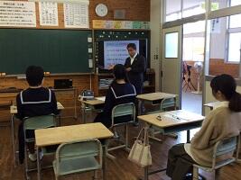 10月30日(月)の5・6校時に3年生対象に今年2回目の高校説明会を実施しました。日南高校、日南振徳高校、日南学園高校に来ていただき、50分の説明をしていただきました。子どもたちは2校を選んで、じっくりと説明を聞いていました。これからいよいよ進路選択の時期になります。いろいろな話を参考にして、最後は自分で決断してください。