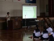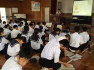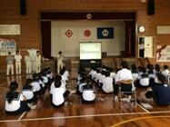 6月1日(木)の午後に津波・地震対応の避難訓練を実施しました。地震が来て、津波の危険が予想されるという想定で、学校の前の高台に避難しました。その後で、体育館に移動し、日南土木事務所の方に来ていただき、土砂災害やハザードマップの活用等について講話をしていただきました。自然災害がいつ来ても大丈夫なように、日頃の備えと対応する力を身に付けて欲しいと思います。