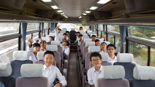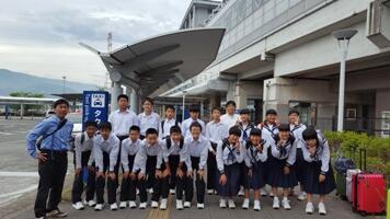 6月20日(火)、6時25分、やや曇り空のもと、2年生18名全員が元気よく修学旅行に出発しました。細田中を出て、熊本の新八代駅に向かい、そこから新幹線で広島に向かいます。今日は京都泊になります。新八代駅着は9時15分予定です。