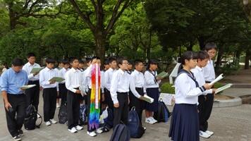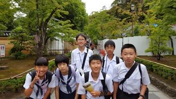 修学旅行1日目が無事に終了しました。宮崎は大雨でしたが、広島でも京都でも雨には降られなかったそうです。熊本から広島に行き、広島で平和学習、そこからまた新幹線で京都に入りました。画像は熊本駅で新幹線に乗る前と、広島での平和学習の様子です。