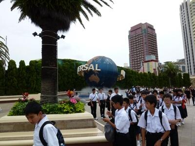 修学旅行最終日を迎えました。ホテルでの最後の朝食、そしてホテルの人へのお礼のことば、一行は最終目的地のユニバーサルスタジオジャパンに向かいます。