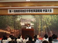 9月28日(木)に小村記念館で【第60回南那珂地区中学校英語暗唱弁論大会】が開催されました。本校からは2年生の松﨑百花さんと3年生の藤丸夏央君が学校代表として出場しました。松﨑さんは暗唱の部で「E.T.」のタイトルでスピーチをしました。藤丸君は弁論の部で「My Track and Field」のタイトルで自分が取り組んできた陸上競技について弁論しました。残念ながら2人とも入賞はしませんでしたが、素晴らしいスピーチでした。10月22日(日)に開催されます校内文化発表会の時にもスピーチしますので、ぜひ聴きに来てください。