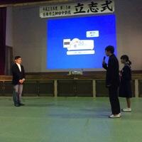 平成29年2月7日(火)の午後に2年生の立志式を実施しました。2年生がそれぞれ一人ずつ将来の夢や決意表明を発表し、立志式の歌を披露しました。その後は記念講演として、九州パエリア代表の日髙勇様が【世界から見た日南市】の演題で講演をしていただきました。グローバルな視点での話で、これからの子どもたちの参考になったと思います。