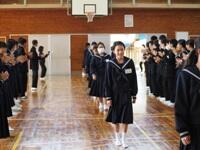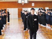 4月13日(木)の6校時に生徒会主催の対面式が行われました。入学してきた1年生と2・3年生の公式の初顔合わせになります。生徒会執行部から生徒会の説明の後、各学年が趣向を凝らした学年紹介を行いました。最後に男子ソフトテニス部と女子ソフトテニス部の紹介がありました。