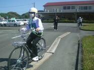 4月14日(金)の5・6校時に日南自動車学校で、日南警察署や安全協会、日南自動車学校の協力を得て、交通安全教室を実施しました。自転車の点検の仕方や自転車の正しい乗り方、通行の仕方などを実技を交えて教えていただきました。また、検証実験では斜め横断の危険性やエアバック体験などもさせてもらいました。ルールとマナーを守って、今年も1件の交通事故も発生しないように願っています。