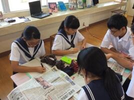 9月8日(木)の午後の時間に【出前授業~学校に宮日がやってくる第2弾】を実施しました。今回は夏休みに地域を回って、各自のテーマで取材したことを、どう効果的に紙面にするかの授業でした。訴えたいことの見出しの付け方やレイアウトの仕方などを学びました。この成果は来月の文化祭で披露します。楽しみにお待ちください。