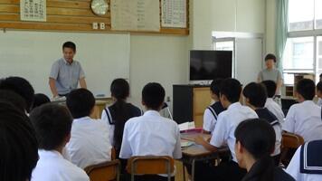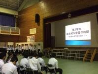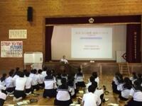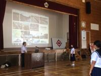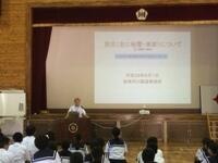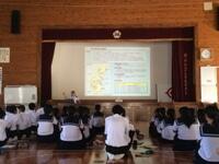 9月7日(水)の午後に国土交通省 九州地方整備局宮崎河川国道事務所の総括地域防災調整官の末吉正志様にご来校いただき、防災講話をしていただきました。防災の日、防災週間を踏まえ、子どもたちに日頃から防災意識を身に付けて欲しいとの狙いで実施しました。