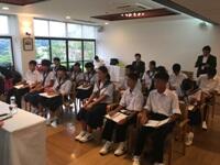 10月2日(日)に無事に2年生全員が細田中学校より3泊4日の【修学旅行】へ出発しました。写真は長崎原爆資料館へ行った後、語り部による平和学習をしている様子です。真剣な面持ちで話を聴き、改めて一人ひとりが平和について考える良い時間となりました。