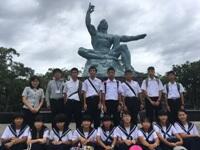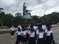【修学旅行2日目】です。写真は、平和公園・祈念像で平和の集い、長崎班別自主研修の様子です。天気は一日曇りで、ほんの少しだけ雨が降ったとのことでした。