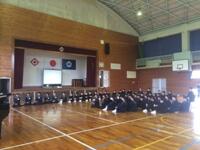 4月11日(月)の6校時に、生徒会主催の対面式を行いました。新入生と2・3年生の公式な初顔合わせの行事です。2・3年生の手拍子に迎えられて入場した1年生は、緊張した面持ちで、1人1人自己紹介しました。その後で、生徒会から生徒会活動や学校生活の説明をスクリーンを使って、分かりやすくやってもらいました。2年生の学年紹介、3年生の学年紹介がそれぞれあり、1年生も少しリラックスした表情になっていました。