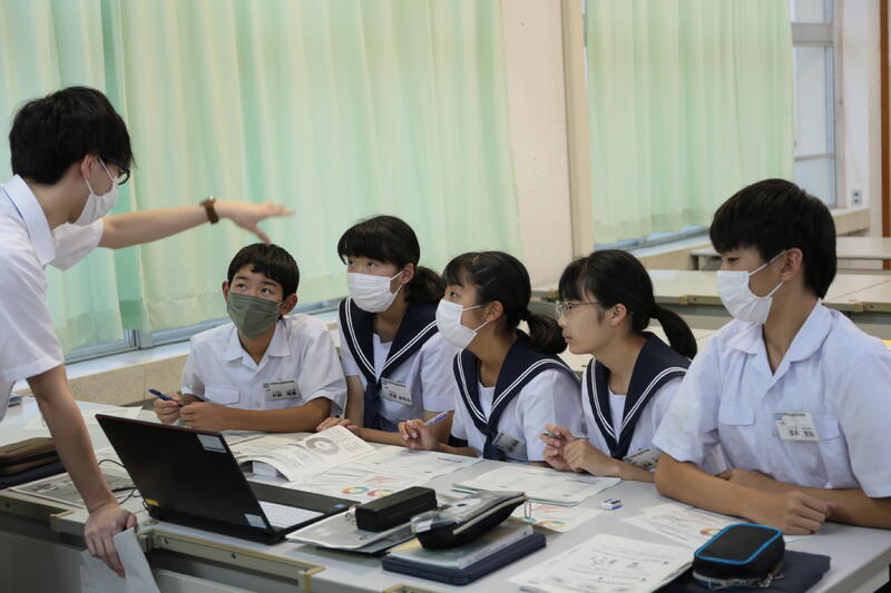 先生たちは、新時代を生き抜くために必要な力を身につけるための授業づくりに挑戦しています。求める授業を簡単に言えば、先生の話を一方的に聞くのではなく、生徒が考えを出し合い、答えを作り出すような授業です。先生全員が、ひなたの学びを意識した授業づくりに挑戦し、お互いの授業を参観して学び合っています。どの授業も生徒が考えたり発表したりする場面が取り入れられています。