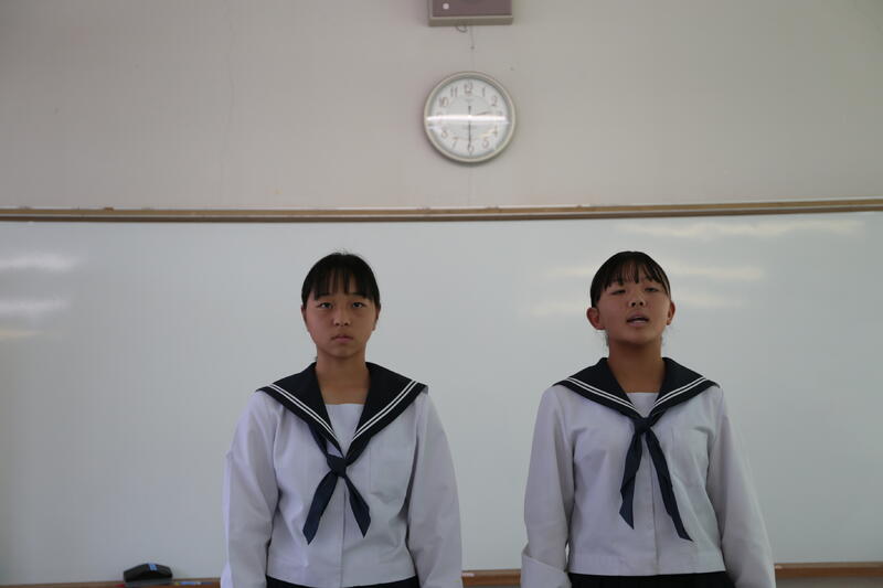 始業式では、2年生の河野さんと3年生の滝瀬さんが新年の抱負を発表しました。発表が終わった後の二人の感想です。