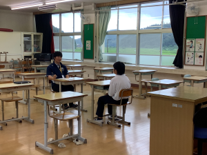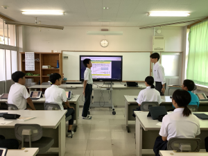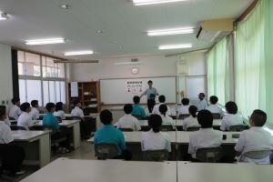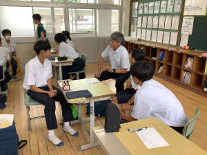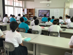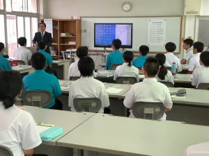 高校説明会・授業参観を開催いたしました。高校説明会では、宮崎第一高校、日章学園、日南学園、日南高校、日南振徳高校の5校の先生方に各校の特色や教育方針についてご紹介いただきました。授業参観では、1年生は「英語」、2年生は「理科」の授業を公開し、生徒たちは積極的に発表に取り組んでいました。多くの保護者の皆様にご参加いただき、心より感謝申し上げます。