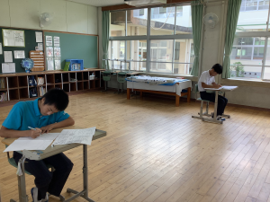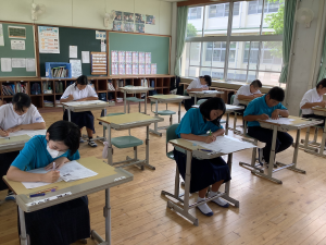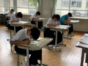 1学期の学習のまとめとして、期末テストを実施しました。静かな教室の中、一人ひとりが真剣な表情で問題に向き合い、これまでの学びの成果を発揮しようと懸命に取り組んでいました。どの学年の生徒も、テストに向けて家庭での学習にも熱心に取り組んできました。テストは、ただ点数を取ることが目的ではなく、自分の得意なところや課題を見つけ、次の学びへとつなげていく大切な機会です。テスト前の準備とテスト後の振り返りをしっかりと行い、1学期の学習内容をしっかりと身につけてほしいです。