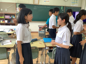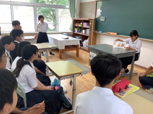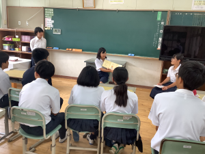 生徒活動の時間に生徒による「読み聞かせ」を行いました。本を読む生徒たちは、「人に聞きやすい読み方」を意識し、適切なスピードや豊かな感情表現を工夫して読んでいました。聞く生徒たちは、物語の内容に集中し、感想や読んでくれた友達の良かった点などを丁寧に伝え合っていました。生徒たちは読み聞かせを通して、言葉の楽しさや本の魅力を実感しながら、互いに学び合う貴重な時間となりました。これからも様々な本との出会いを大切にして欲しいです。