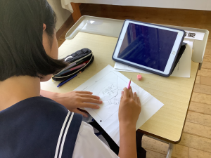各学級では、学級旗のデザインやクラス目標を考える活動を行いました。学級旗は、クラス全体の「象徴」となる存在です。その制作過程で、意見交換や協力が生まれ、仲間意識や団結力が深まります。みんなでデザインやスローガンを考えることで、クラスの個性を表現するだけでなく、行事へのモチベーションを高めることができます。今年一年の思い出に残る学級旗が、どのような仕上がりになるのか楽しみです。