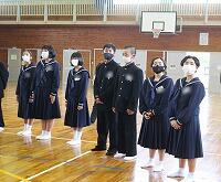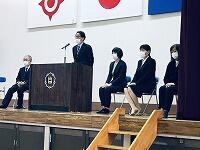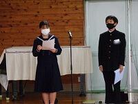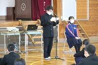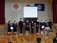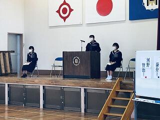 今日は3学期始業式でした。生徒たちは2学期終業式時の約束通り、元気よく登校しました。それぞれの学年や生徒会の代表生徒4名が取り組む内容を具体的に発表しました。