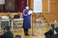 今日は、終業式でした。各学年と生徒会の代表生徒4名があいさつをしました。どの生徒も2学期の取組をしっかりと振り返り、課題に気付き、3学期に向けての自分なりの目標を立てていました。全校集会では、先日行われた校内ロードレース大会の表彰や各種検定等の表彰を行いました。たくさんの生徒が表彰され、表彰する側も嬉しかったです。