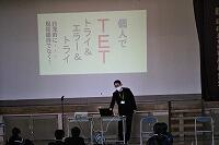 また、その後は研究主任の小田先生からタブレット学習の基本を学びました。使用する際の約束事の確認をしっかりとした後、実際にタブレットを触りながら学習していきました。みんな興味津々でした。生徒も教師もこれからが本番です。